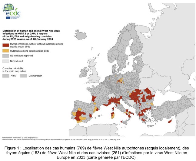 Faisant suite aux 2 premiers foyers équins de la saison en France recensés dans les Bouches-du-Rhône fin juillet 2025, plusieurs cas humains ont été détectés depuis : dans le Var, les Bouches-du -Rhône et dernièrement en Seine-Saint Denis à Epinay-sur-Seine et Pierrefitte-sur-Seine. Les deux personnes touchées n’ont pas voyagé dans le sud ce qui pourrait signifier une extension importante du West Nile en France. Les autorités sanitaires appellent à la vigilance dans des départements Franciliens (Val d’Oise et Hauts-de-Seine) compte tenu des déplacements professionnels des deux cas humains identifiés.